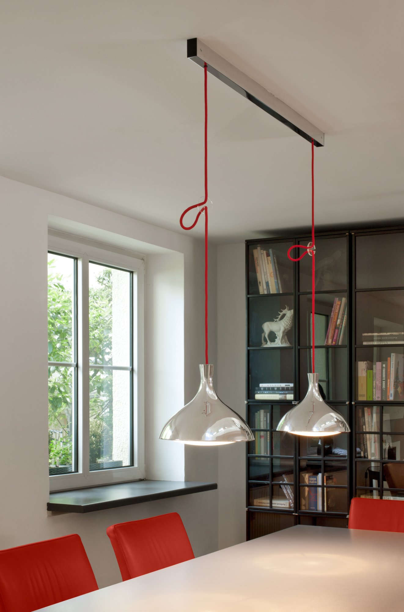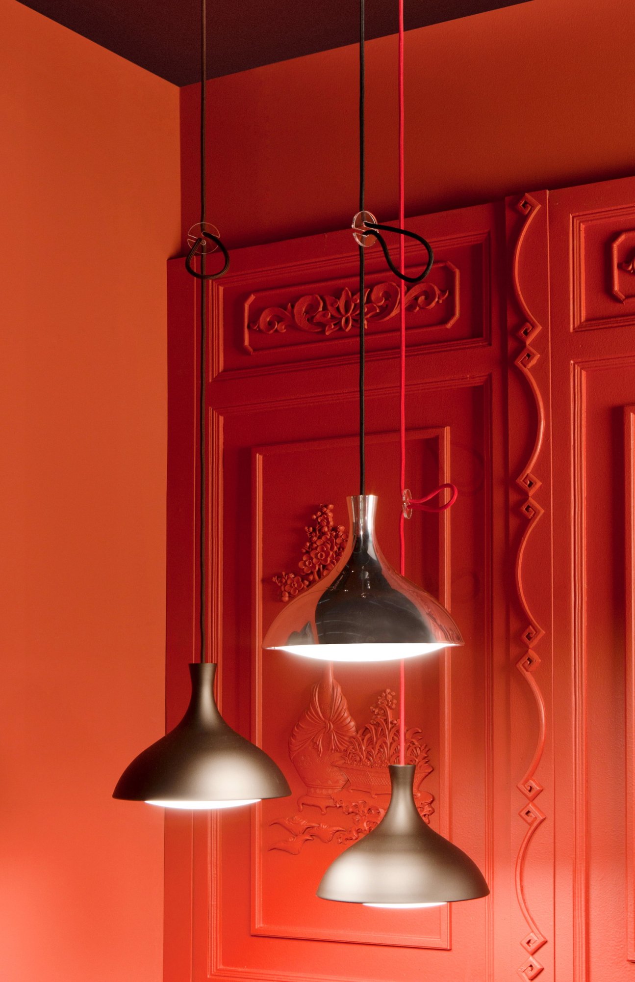 Steh- bzw. Pendelleuchte mit gedrücktem Aluminiumschirm